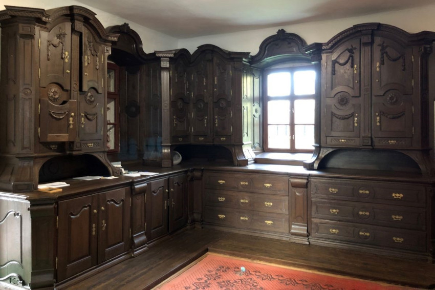 A templom belső építészeti díszeihez illeszkedő copf stílusú sekrestyeszekrénye 1780-ban készült. Az azóta eltelt idő nyomot hagyott rajta, elsősorban a tartószerkezetén: a szekrény alja az talajjal érintkezve az eltelt évszázadok alatt fokozatosan korhadt, ezáltal az egész felépítmény deformálódott. A szekrényt a restauráláshoz teljesen darabjaira szedték és elszállították. Új betonaljzat is készült alá, ma pedig már ismét teljes pompájában láthatják mindazok, akik a sekrestye szintén korabeli ajtaján a helyiségbe belépnek.