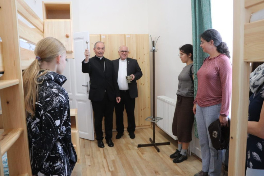 A főpásztor a beszéd után megáldotta a kollégium megújult szobáit, berendezéseit, Isten áldását kérve a diákokra és szüleikre is.