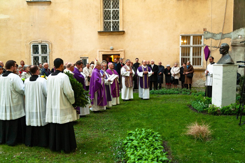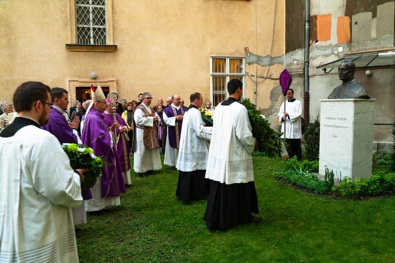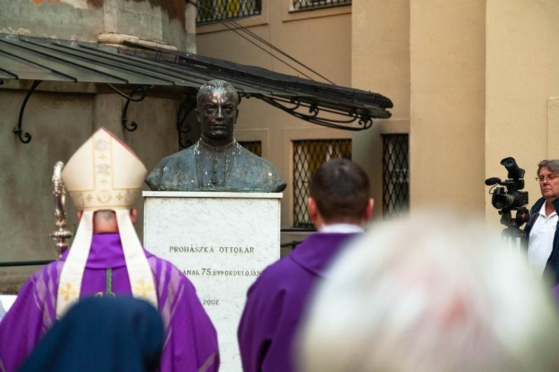 A szentmise után az ünneplő közösség a főpásztor vezetésével a szeminárium udvarára vonult, ahol az egykori papnevelő tanár, Magyarország apostola és tanítója szobránál elhelyezték az emlékezés virágait. A papnövendékekkel és a hívekkel együtt imádkoztak Prohászka Ottokár boldoggá avatásáért, a püspök közbenjárásáért, a magyar egyházért, papi hivatásokért.