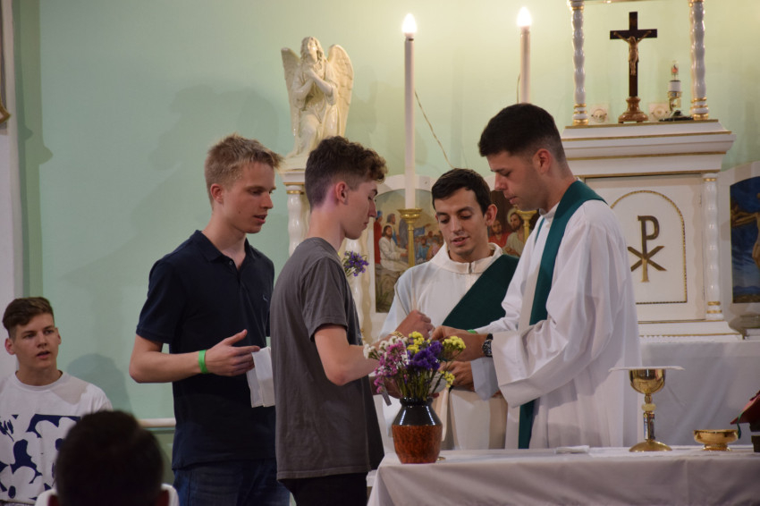 Gyulay Endre arra buzdította a fiatalokat, fordítsák figyelmüket, erőkérésüket istengyermeki kapcsolatuk építésére. A nap piros színe, a Szentlélek, az erő, a tűz színe azt üzente, mindenkit visszavárnak.