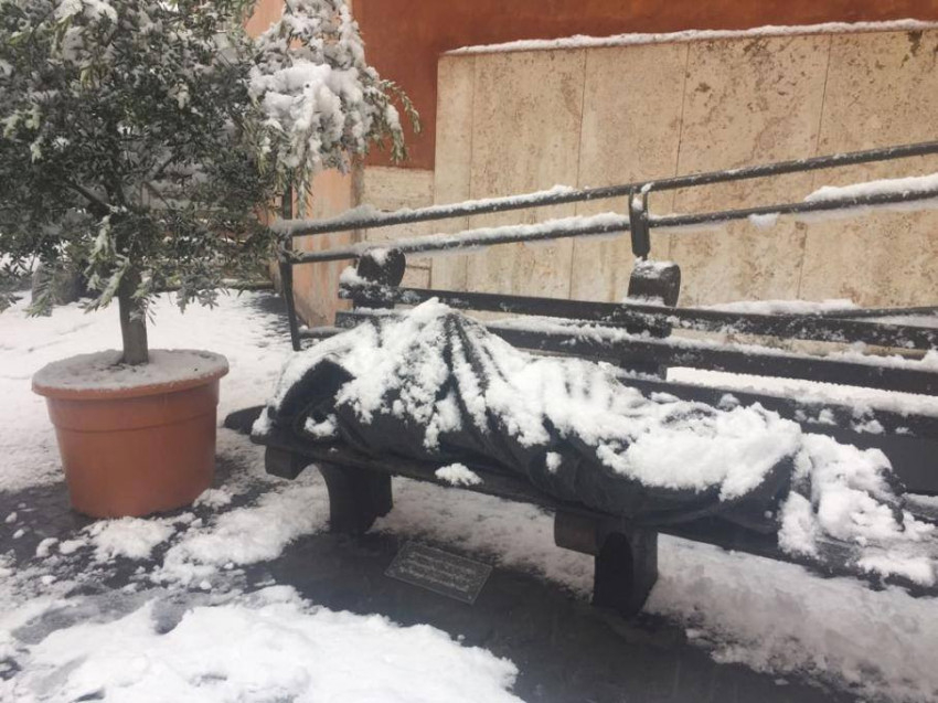 Fotó: Timothy Schmalz A hajléktalan Jézus című szobra (Róma, Piazza di S. Egidio)