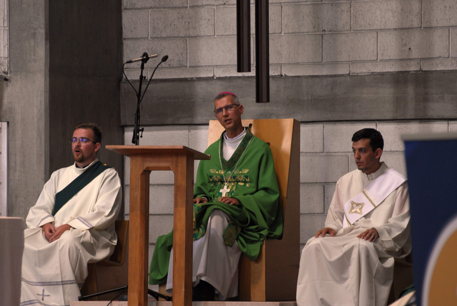 A katekéziseket követően kezdetét vette a szentmise, amelynek főcelebránsa Martos Levente Balázs, az Esztergom-Budapesti Főegyházmegye segédpüspöke volt. A szentmise homíliáját Fábry Kornél mondta. Szentbeszédében a napi evangéliumban elhangzó példabeszédeket átültette XXI. századi környezetbe, mi több „lefordította” azt az ifjúsági világtalálkozó nyelvezetére.