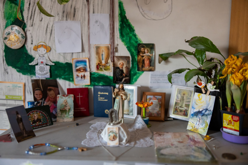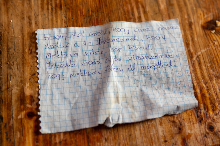 2023 februárjában szentségi házasságot kötöttek, májusban megkeresztelték a gyerekeket, utána volt az elsőáldozás. Az imádság pedig a nagy bajok idején életmentő: Lídia elmeséli, hogyan imádkoztak a nagybeteg Gergelyért, aki mozdulni sem bírt, csak feküdt. „Semmi mást nem csináltam, csak imádkoztam, hogy ne vegye el a Jóisten, gyógyuljon meg. Sokszor bebizonyosodott, hogy amikor már nincs más, a Jóistenben kell bízni, ő megsegít.” Mindannyian letérdeltek az ágy elé, és ott fohászkodtak, hosszan. Lídia fontosnak tartja a jeleket. Ekkortájt például az üknagymama szentképei között talált egy gyűrött, kockás papírra írt imádságot – „mintha ő rakta volna ide nekem” –, ami akkor és ott nekik szólt: „Hagyj fel azzal, hogy arra panaszkodsz a te Istenednek, hogy mekkora vihar vesz körül. Inkább mondd a te viharodnak, hogy mekkora Isten áll mögötted.” Gergely meggyógyult, megerősödött a hitük a mögöttük álló Istenben, az üknagymama emléke pedig erősen él a családban, minden gyerek őriz tőle tárgyakat, mondják a tőle tanult imákat.