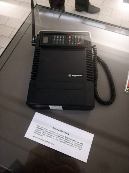 Egy másik tárlóban táskányi méretű fekete doboz látható, ami Motorola MCR 4800XL névre hallgat – egy ilyen típusú rádiótelefonnal indította Magyarországon az első mobilhívást 1990. október 15-én Bod Péter Ákos ipari és kereskedelmi miniszter. Ezzel avatták fel az első olyan magyarországi rádiótelefon hálózatot, mely független a földi hálózattól, de azzal is tudott kommunikálni.
