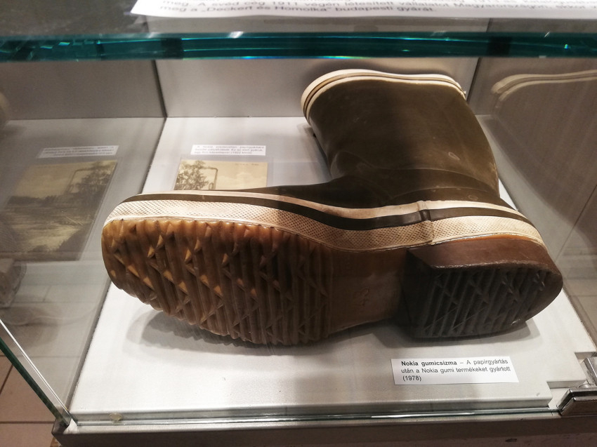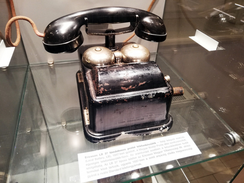 Na, de nézzünk körül a szép üvegezett fatárlókban, a mobilok világában. Az egyik vitrinben egy igen ósdi, kellőképpen kopott, sokat használt telefonkészüléket láthatunk, az Ericsson LB 37 fémdobozos postai masinát 1937-ből. A Magyar Királyi Posta rendszeresítette ezt a típust. Az áramforrást ezekben a készülékekben kurbli szolgáltatta. Ugyanebben a vitrinben messziről feltűnik egy gumicsizma, amit még a Nokia gyártott 1978-ban. A finn cég eredetileg papírgyártással foglalkozott, később gumi termékeket állított elő.