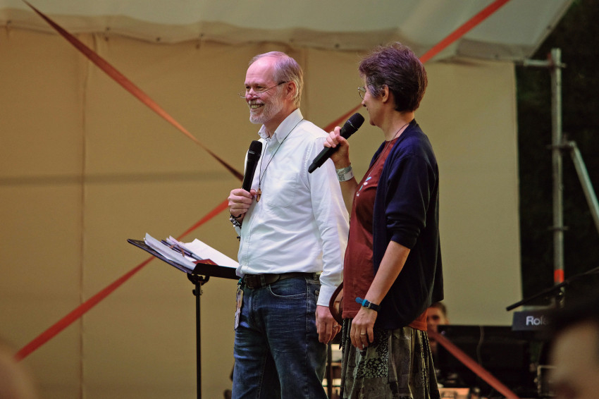 A Családok Jézusban Közösség képviseletében a Gorove házaspár is a Meghallgatlak sátorban várja beszélgetésre a járókelőket. „Figyelem az embereket, ha észreveszem valakin az érdeklődést, a bizonytalanságot, megszólítom” – mondja Krisztina. „Van, aki konkrét problémával jön, van, aki imát kér, van, aki csak beszélgetni akar, elmondani, ami a szívét nyomja. Lehetne ebből rendszert csinálni, hogy többször kijövünk a templomokból. Fontos lenne mutatni az embereknek, hogy mit csinálunk, hogy tudunk énekelni, és nemcsak a gregorián, nemcsak old fashion van” – fejti ki Krisztina.