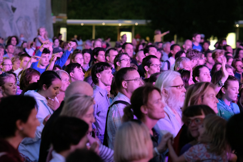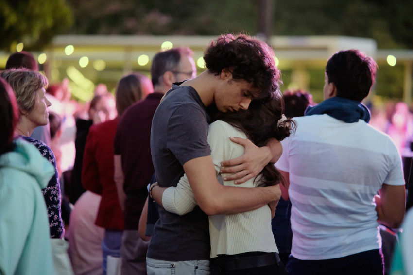 Sok a fiatal, a Karizmatikus Megújulás közösség által szervezett 250 fős nyári tábor résztvevői flashmob táncára nem csak a kortársak kíváncsiak.