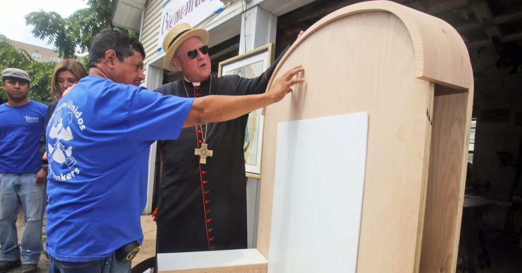 „Aki találkozik ezekkel az emberekkel, az megtanulja szeretni és tisztelni őket” – mondta Dolan bíboros, amikor csütörtökön meglátogatta a munkásokat. „Ők büszke, keményen dolgozó emberek, akik hihetetlen készségekkel rendelkeznek és gazdagítják a kultúránkat.” Dolan megölelte a dolgozókat és az önkénteseket és együtt nevetett velük. Angolul és spanyolul mondott köszönetet nekik a munkájukért.