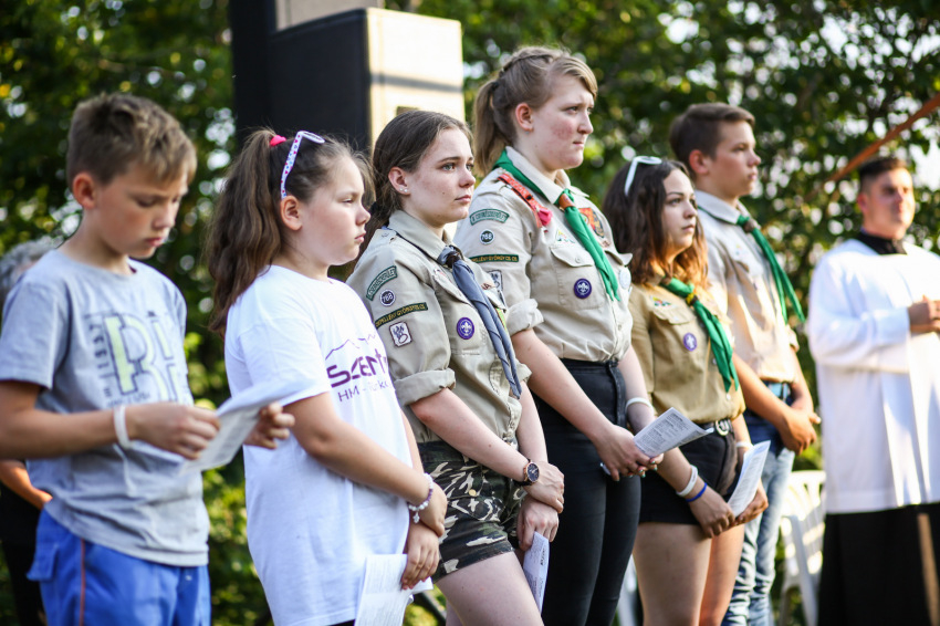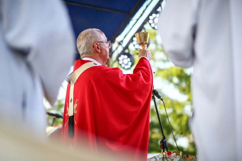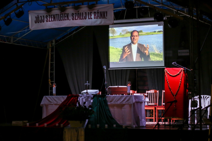 Aztán elkezdődik a mise. Ternyák Csaba örömmel állapítja meg bevezetőjében, hogy sok itt a fiatal, és a pünkösdi Lélek fiatalító, megújító, éltető hatásáról beszél. Aztán a könyörgés következik, annak reményével, hogy a sokféle nemzet közös nyelvet találhat, isteni közbenjárással képes lehet megérteni egymást, ahogy az az első pünkösdkor történt Az apostolok cselekedetei leírása szerint.