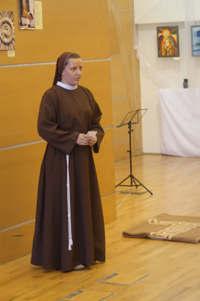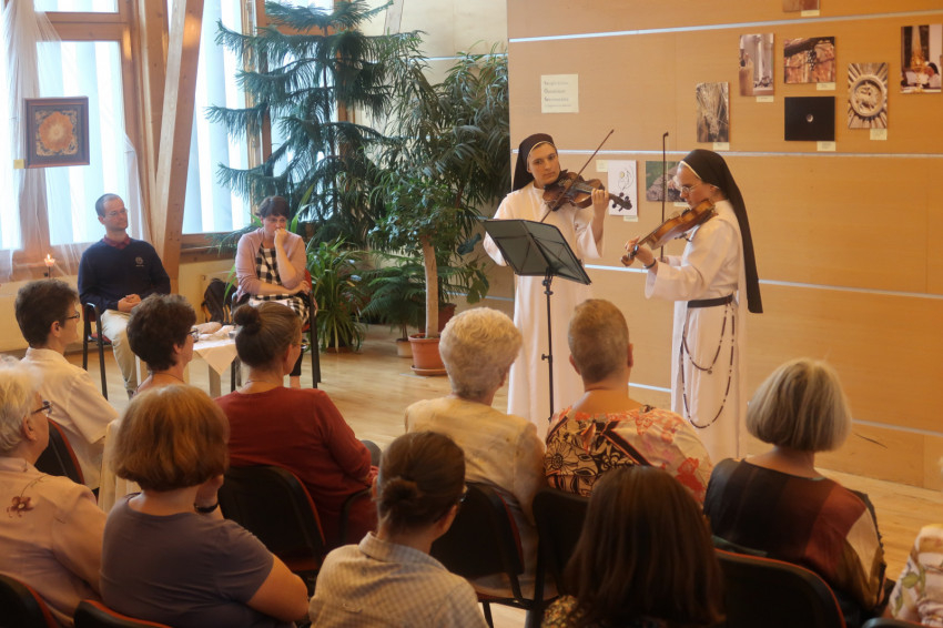 A jelenlévők megélhették, milyen, amikor a költészet, a zene és a képzőművészet egymásba fonódva vezet egy úton, melynek célja az Isten dicsérete. A költészet nyelvén Kurczina Teréz versei szóltak az Eucharisztiában jelen lévő Krisztusról, melyeket Balog Anikó adott elő. A képzőművészet nyelvén Németh Anna, Hegyi Klára szerzetesek és Sóvári Melinda fejezték ki a bennük élő Istent.