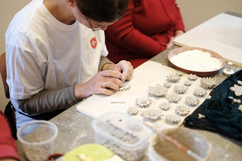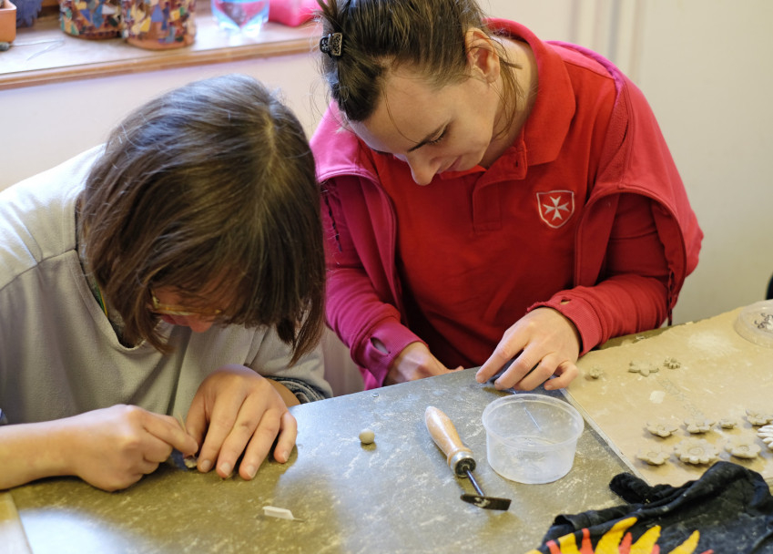 A Magyar Máltai Szeretetszolgálat pátyi Gondviselés Háza területén működő kerámiaműhelyben megváltozott munkaképességű, középsúlyos vagy enyhe értelmi fogyatékossággal élő emberek dolgoznak. A műhely története immár három évtizedre nyúlik vissza. Hagyó József, a Jézus Kistestvérei kongregáció tagja – vagy ahogyan a műhelyben emlegetik, Jóska bácsi – a Jean Vanier és Marie-Hélène Mathieu által alapított Hit és Fény lelkiségi mozgalom magyarországi közösségében azzal szembesült, hogy az iskolarendszerből kikerült, már felnőtt, fogyatékossággal élő fiataloknak szükségük lenne arra, hogy valami hasznos tevékenységet végezhessenek, és ezért fizetést is kapjanak. Hagyó József a szülőkkel együtt álmodta meg ezt a kézműves műhelyt, amelynek első otthona Biatorbágyon volt, és nem is kerámiaműhelyként indult. „Többféle dolgot kipróbáltak, például a szövést, de ennek a közösségnek a kerámiázás vált be – meséli Mrázné Jáger Júlia, a műhely vezetője, aki tizenhárom évvel ezelőtt csatlakozott a csapathoz, keramikusként. – Ma több hasonló védett munkahely van az országban a fogyatékossággal élőknek, és nagyon színes a paletta. Van, ahol gyönyörűen hímeznek, máshol szőnek vagy gyékényt fonnak. Hogy ennek a közösségnek miért a kerámiázás vált be, azt csak a Jóisten tudja. Pedig ez egy elég nehéz mesterség” – teszi hozzá Júlia.