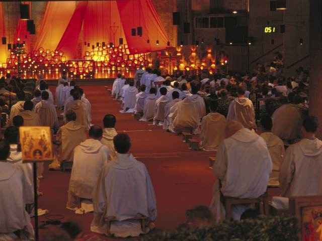 – Az ének a monasztikus hagyomány része. Mi kezdettől fogva énekeltünk, de a ma ismert kánonjainkat csak a ’70-es évektől kezdve kezdtük énekelni, miután a fiatalok váratlanul elkezdtek ide járni. Szerettük volna, hogy az imádságunkban ők is jobban részt tudjanak venni, igyekeztünk figyelembe venni, honnan jönnek, milyen nyelven beszélnek. Sok mindent kipróbáltunk, amíg egyszer csak, szinte véletlenszerűen elkezdtünk egy kánont énekelni és észrevettük, hogy tetszik a fiataloknak. Könnyű volt, mindenki meg tudta tanulni. Azonnal felkerestük egy barátunkat, adtunk neki – kezdetben latin nyelvű – szövegeket, hogy írjon hozzájuk zenét. Nagy felfedezés volt. Az újabb kánonokat ma már a testvérek írják.