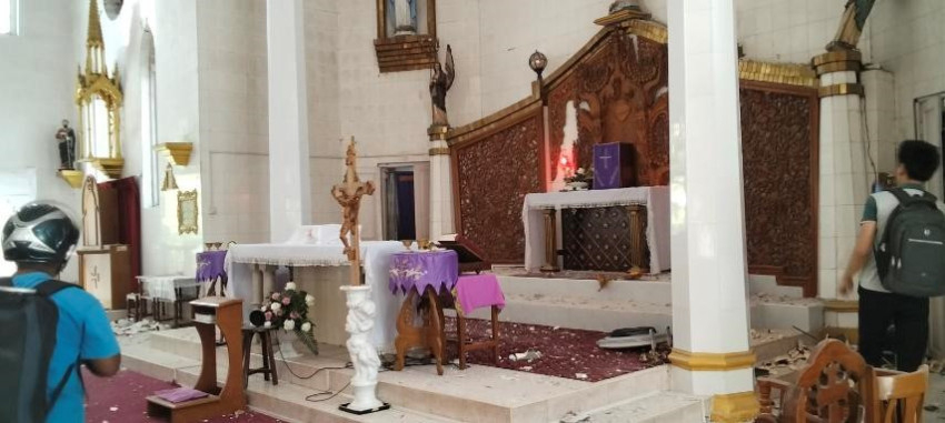 Fotósorozatot is küldtek az érsekségről, amely a Mandalay városában az épületekben keletkezett súlyos károkat mutatja.