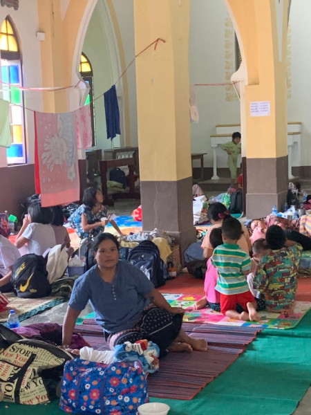 A 90 ezres lakosságból mintegy 50 ezren menekültek el házaikból. Francis Soe Naing azt mondja, amíg lehet, ott marad. Fényképeket is küldött a hírügynökségnek a székesegyházról, ahol asszonyok és gyerekek imádkoznak, az iskolások tanulnak és játszanak, bent étkeznek. A menekülők a templom belső terében rendezkedtek be, megmaradt vagyonukat is oda vitték.