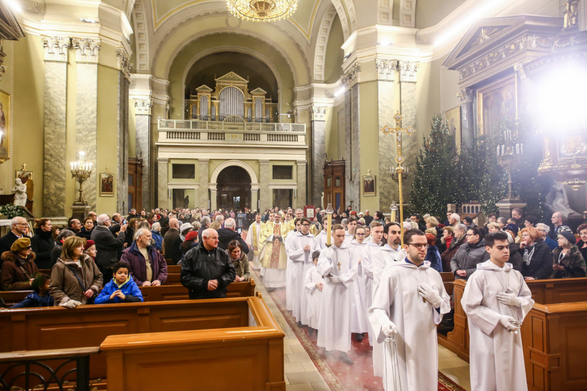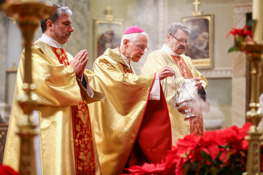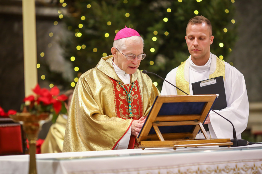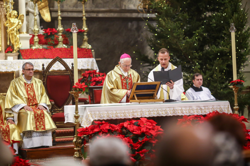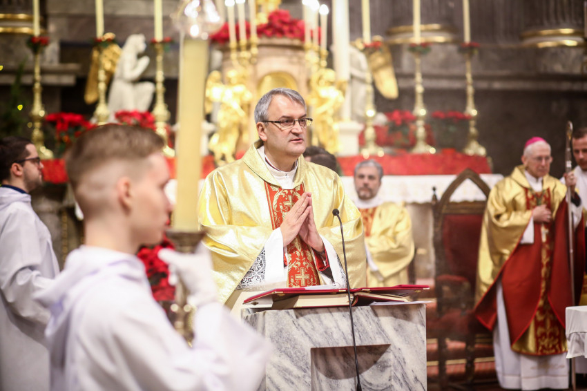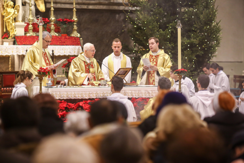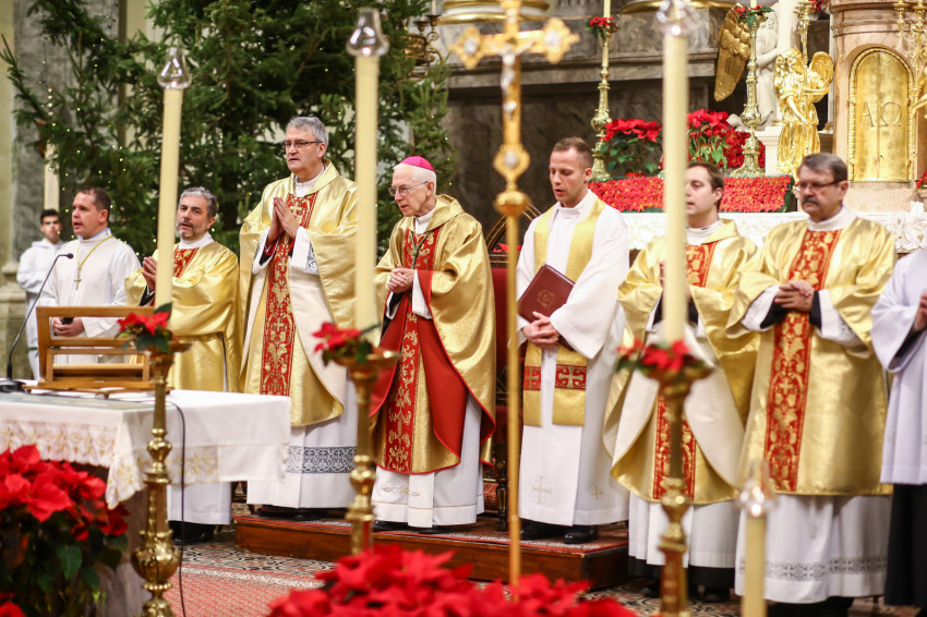 „Amint az evangéliumban hallottuk, a pásztorok az angyalok felhívására felkeresték a szent családot. Mindegyikük csodálkozott azon az üzeneten, amit hallottak, hiszen a sötét éjszaka egyszerre a fény és az öröm ünnepévé változott. A pásztorok pedig Istent dicsőítve tértek vissza a nyájukhoz” – kezdte szentbeszédét Michael August Blume apostoli nuncius. – Senki sem számított erre a rendkívüli üzenetre. Még Szűz Mária és Szent József is elcsodálkozott azon, amit a pásztorok mondtak nekik. Mária pedig „el-elgondolkodott rajtuk szívében”.