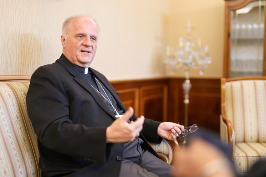 – Június elején két okból mentünk Rómába. Részben a szokásos, három évenkénti találkozónkra – ez egy nagyköveti találkozó, olyan, mint a Magyarországot képviselő nagyköveteké volt, amelyen Gallagher érsek is beszédet mondott (2025. március végén, Budapesten – a szerk.). A nunciusoknak is van ilyen konferenciájuk. Ez egy munkamegbeszélés, amely lehetőséget ad, hogy áttekintsük a nunciatúrákat érintő kérdéseket, a Rómával való kapcsolatunkat és egyéb témákat.