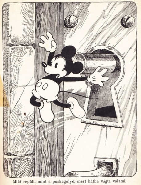 Ezt a kis visszaemlékezést többek között bibliotékánk egyik legbecsesebb darabjának, a Miki egér Óriásországban könyvváltozatának néhány epizódjával illusztráltam, amely magyarul Zigány Árpád igényes magyar szövegével jelent meg, 1934-ben.