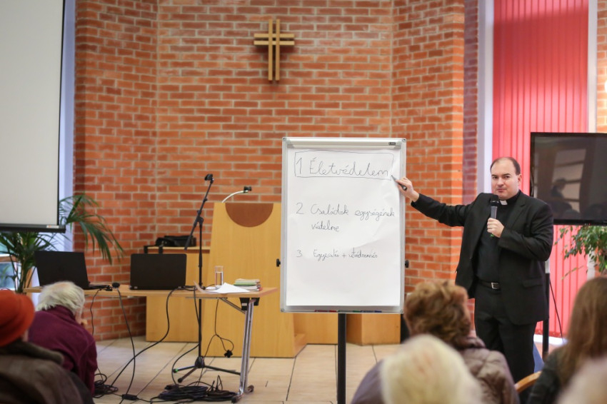 A mesterséges megtermékenyítési eljárások bioetikai és morálteológiai hátteréről Monostori László katolikus erkölcsteológus beszélt. A téma azért érzékeny, mert sok nehézség, szenvedés és fájdalom származik abból, ha egy házaspárnak nem lehet gyermeke. Az in vitro fertilizációt (IVF) szokták lombikbébi-módszernek nevezni. Ilyenkor több megtermékenyített petesejtet helyeznek el az anyában. A Petri-csészében sokszor még ennél is többet hoznak létre, a szám feletti embriókat pedig elpusztítják vagy lefagyasztják. Azt azonban nem lehet tudni, hogy a több százezer lefagyasztott embriónak mi lesz a sorsa. Egy lombikbébi-eljárásnál átlagosan hat és tizenhat közötti embriót hoznak létre. Ha az ivarsejtekkel probléma van, akkor egy harmadik féltől vesznek igénybe örökítő anyagot. Ad absurdum az is előfordulhat, hogy egy béranya igénybevételével egy újabb félt is bevonnak a gyerek születésébe. Ez utóbbi Magyarországon illegális.