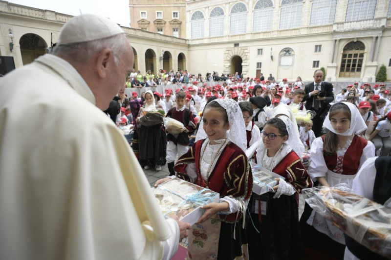 Immár hetedik alkalommal gördült be a Gyermekek vonata (Il Treno dei Bambini) a vatikáni vasútállomásra a Kultúra Pápai Tanácsa, az olasz vasúttársaság és Armatore Onorato nápolyi hajótulajdonos, vitorlásoktató összefogásának köszönhetően. Idén az utasok között voltak a genovai Morandi híd leszakadása, valamint a Szardínia északi részén, 2013-ban pusztított földcsuszamlás által érintett, illetve Nápoly szegénynegyedeiben élő, hátrányos helyzetű gyerekek.