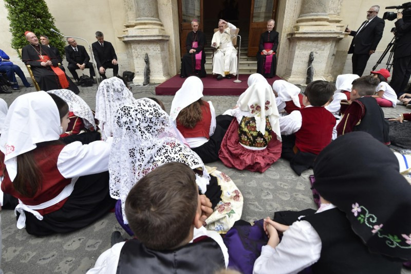 A találkozó végén Ferenc pápa elimádkozta a gyerekekkel az Üdvözlégyet, majd megáldotta őket.