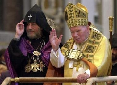 Szent II. János Pál 2001-ben az örmény apostoli egyház fejével, II. Karekin katholikosszal az örmény népirtás áldozatainak emlékművéhez látogatott. A Hrazdan folyó partja közelében emelkedő dombon 1967-ben állítottak emlékművet annak a másfél millió örménynek, akiket 1915 és 1918 között az Oszmán Birodalom lemészárolt. II. János Pál virágkoszorút helyezett el az emlékműnél, és a következő imádságot mondta el:
