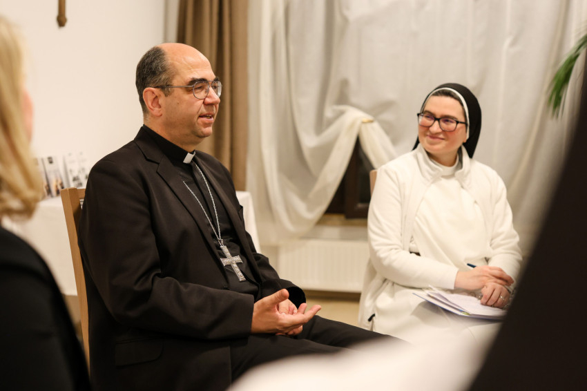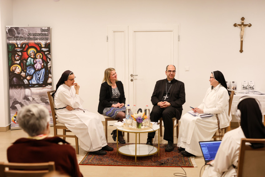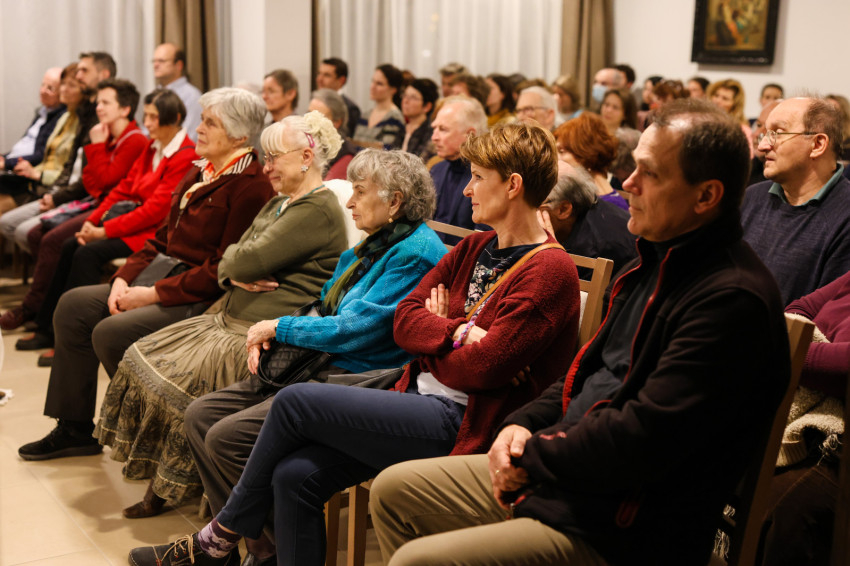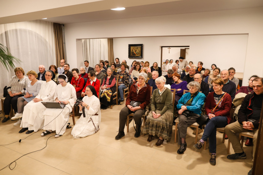 A szép számmal megjelent érdeklődőket Kakucs Adél Petra nővér, a domonkos nővérek általános főnöknője köszöntötte. Kiemelte: mindannyiunk számára fontosak a családi, baráti kapcsolatok, a Jóistennel való kapcsolat pedig meghatározó az életünkben. Mivel a Jóisten nem mennydörög és nagyon ritkán kiabál, nagyon fontos, hogy jól és tisztán halljuk meg a hangját. Biztos, hogy a következő beszélgetés nagy segítség lesz számunkra, hogy még jobban és tisztábban halljuk az Ő hangját, és remélhetőleg abban is segítségünkre lesz, hogy egyre jobban akarjuk Őt hallani, és többet is tegyünk ezért.