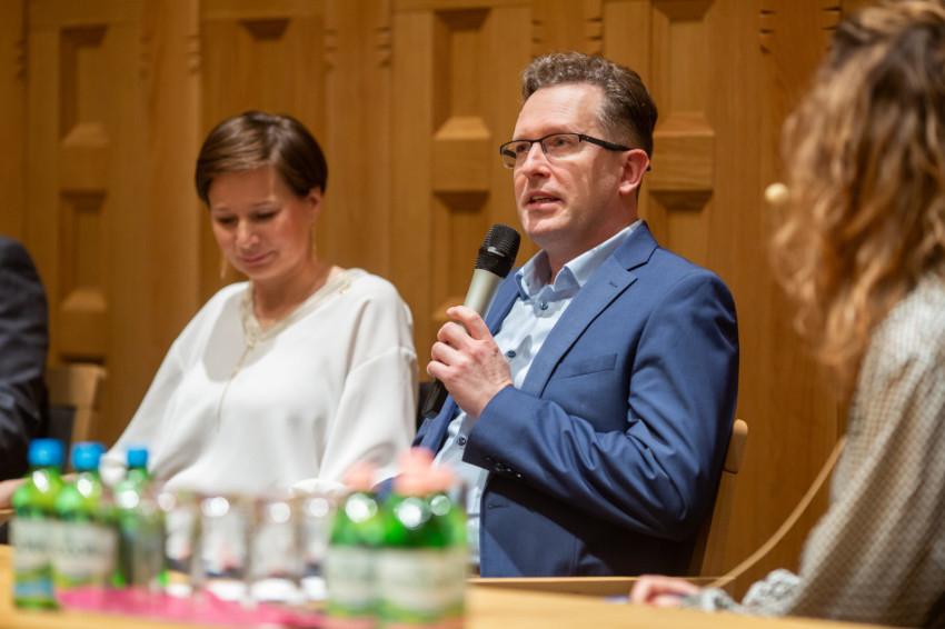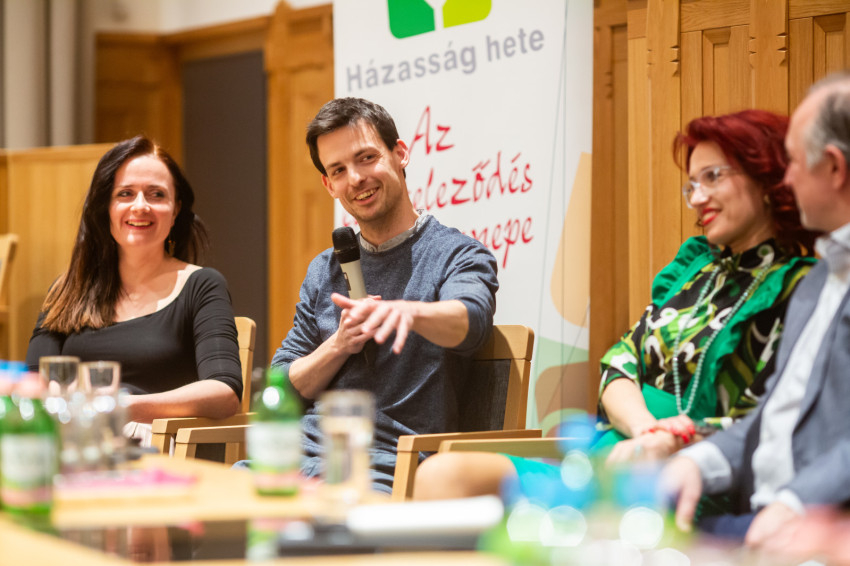 A moderátor kérdésére, hogy a házaspárok lényéhez mit adott hozzá a társuk, Győri Tamás József elmondta: a feleségével együtt abban a kegyelemben részesültek, hogy nagyon korán, egyetemista korukban találkoztak. Sok mindent átéltek, és az biztos: nem az lenne, aki, „ha nem lenne Virág. Ő az, aki engem is formált”. Csodálatos megtapasztalni, hogyan formálja Isten a házastársakat egymás által is a maga képére és hasonlatosságára. Győri Virág kifejtette: sok mindenben nagyon különböznek egymástól, sok mindenben viszont nagyon hasonlítanak egymásra. Összességében azonban jó párost alkotnak. Úgy tudják kiegészíteni egymást, hogy abból valami több születik. Virág például bátortalan személyiség, a férje, Tamás viszont bátor, sőt bizonyos dolgokban vakmerő is, így „jól tudja feszegetni a határaimat. Hálás vagyok azokért, amikben formált engem”.