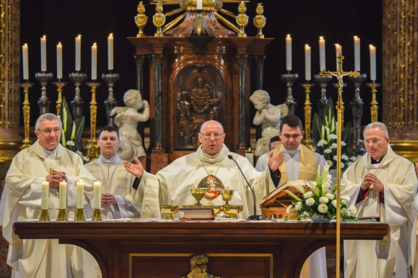 „Vannak olyan álmok, amelyek soha nem válnak valóra, és van olyan valóság, amelyet soha nem álmodtunk volna” – idézte Szentmártoni Mihály jezsuita professzort szentbeszéde elején a szentmise főcelebránsa. – Ennek a mondatnak az igazsága Mária életében csodálatosan megvalósult: hiszen egyszerű názáreti lányként nem gondolt arra, hogy egyszer Isten Fiának lesz az édesanyja. Amikor Isten belépett az életébe, amikor Gábor angyal megszólította őt, akkor Mária kimondta az igent. Arra mondta ki az igent, hogy Istennek semmi sem lehetetlen. Istennek az sem lehetetlen, hogy egy fiatal názáreti lány legyen a lépcső, hogy belépjen ebbe a világba, hogy a megváltás művét a teljesség felé vigye. Istennek nem lehetetlen az, hogy rajtunk keresztül is belépjen a világba, hogy a mi életünkön keresztül is megjelenjen az ő szeretete a földön. Istennek nem lehetetlen, hogy mi, egyszerű emberek tanúi legyünk az ő csodáinak. Ha eléggé nyitva van a szívünk, akkor mindezt megláthatjuk, megtapasztalhatjuk, megcsodálhatjuk Mária életében is. Most is egy csodának vagyunk a részesei. Az 1697. március 17-én történt csoda nem ért véget: a Szűzanya győri kegyképe előtt hívő emberek sokasága talált menedékre, új erőt, lendületet nyerve az élethez, sokan megtapasztalhatták azt, hogy mi minden meg tud valósulni Isten erejéből, az isteni kegyelemmel együttműködve milyen csodák tudnak történni. Nem is gondoltuk volna, aztán egyszer csak minden a helyére kerül. S mi kell mindehhez? Az az egyszerű igen, amit Mária is kimondott Isten szavára, Isten akaratára.