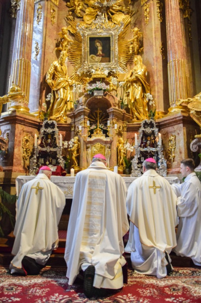 A szentmise végén a főpásztorok Veres András győri megyéspüspök vezetésével a Könnyező Szűzanya kegyoltára előtt imádkoztak.