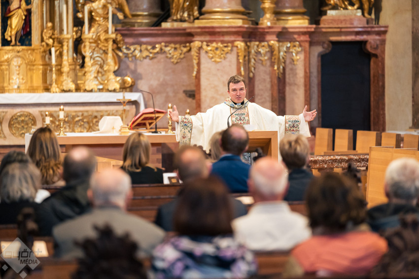 A szentmisét Juhász-Laczik Albin bencés szerzetes, a Pannonhalmi Bencés Gimnázium igazgatója mutatta be, aki jogász végzettséggel is rendelkezik.