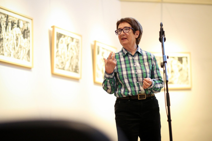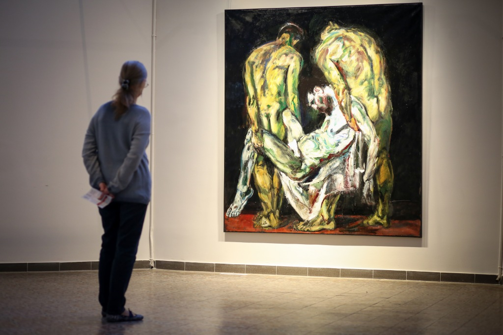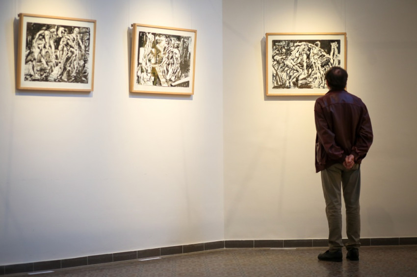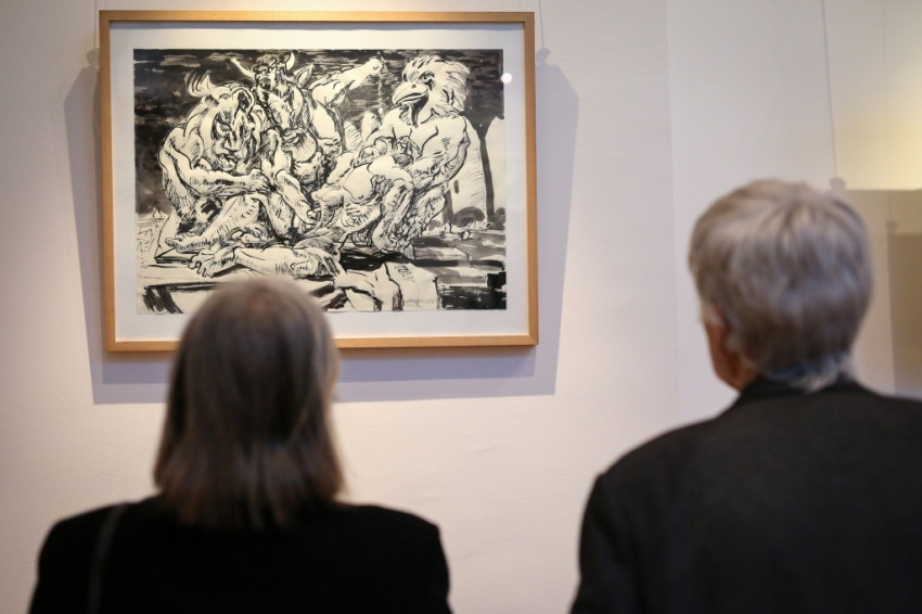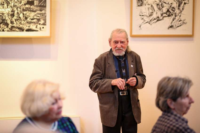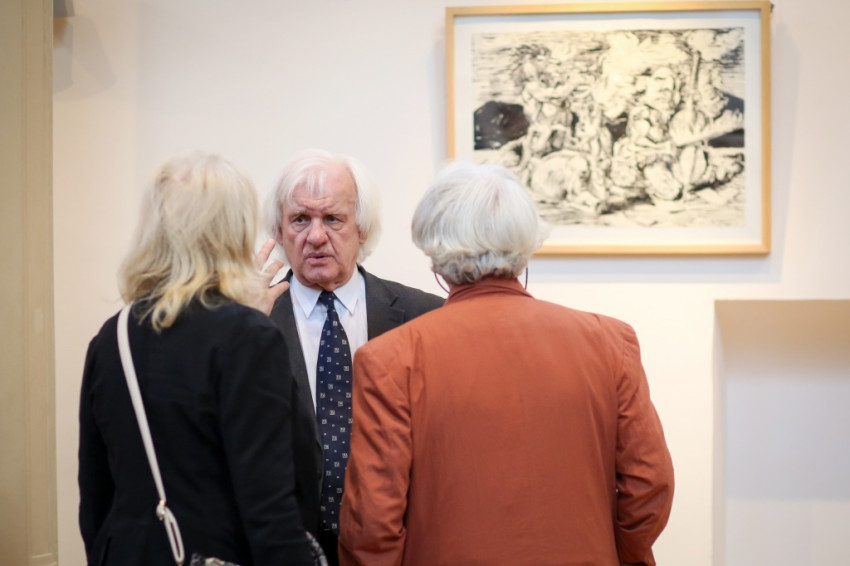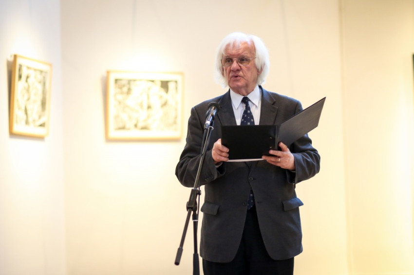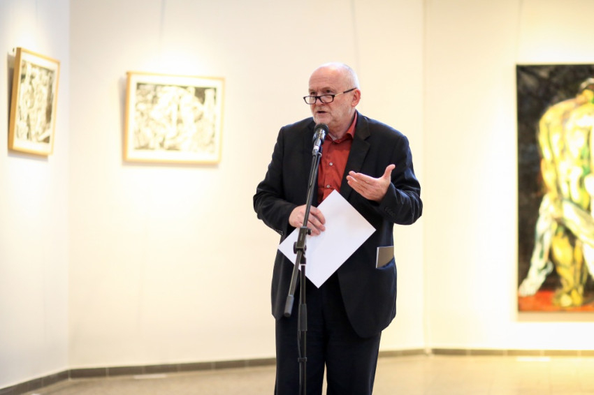 A kiállítást Szakolczay Lajos Széchenyi-díjas irodalomtörténész, művészetkritikus nyitotta meg. Leszögezte: a Münchenben élő, az ottani képzőművészeti akadémián évtizedekig festészeti anatómiát tanító festőművész-grafikus tárlata fölzaklató esemény. Arra, hogy mit tud a festészetből, mit sajátított el érzékeny átformálással-beleéléssel a klasszikusoktól, hatalmas olajvászna, a Szamaritánusok a legjobb példa. Vajon a két izmos férfi kezében a keresztről levett Jézus pihen-e? Nem tudhatni. Egy bizonyos, a júdeai zsidók őt is, a megfeszítettet, szamaritánusnak tartották. A testek feszülése és ernyedtsége, két végletes állapot, jó alkalom arra, hogy a művész beléjük lopja a dinamikát. Az erőtlen testtel annak elveszejtését, az erősekkel pedig annak robbanó hatását – mondta a művészetkritikus.