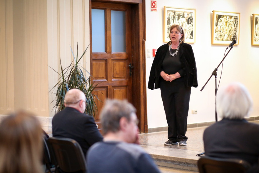 A megnyitó záróakkordjaként Simonyi Emő elmondta: a kiállítás anyaga harminc év termése. A művésznő szavaiból kiderült, hogy rendkívül tudatos és hatalmas munkabírással rendelkező alkotó. Rengeteg helyre elutazott, Angliától kezdve Olaszországon át Afrikáig, hogy megismerkedjen az ősi művészeti formákkal. Napközben nyolc órán keresztül készíti kisalakú grafikáit, utána pihenésképpen egy órát fut, éjszaka pedig nagyméretű képeit festi. Mellette évtizedeken át tanított a Müncheni Művészeti Akadémián.