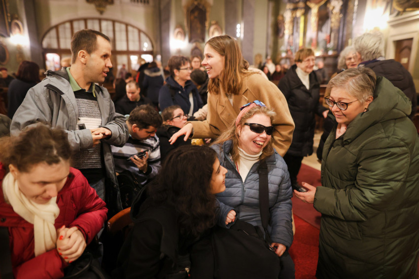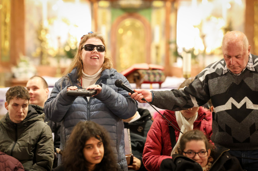 Az intézmény gondozottjai izgatottan készülődtek december 18-án délután a Szent Anna-templomban. Az egykori gyerekek már fiatal felnőttekké váltak. Köztük többen nemcsak látás-, hanem mozgássérültek is, kerekesszékben ültek. Mohos Gábor püspök, Jánosa Domokos, a templom plébánosa és Szitás József, veszprémi főegyházmegyés nyugalmazott plébános velük szemben foglaltak helyet.