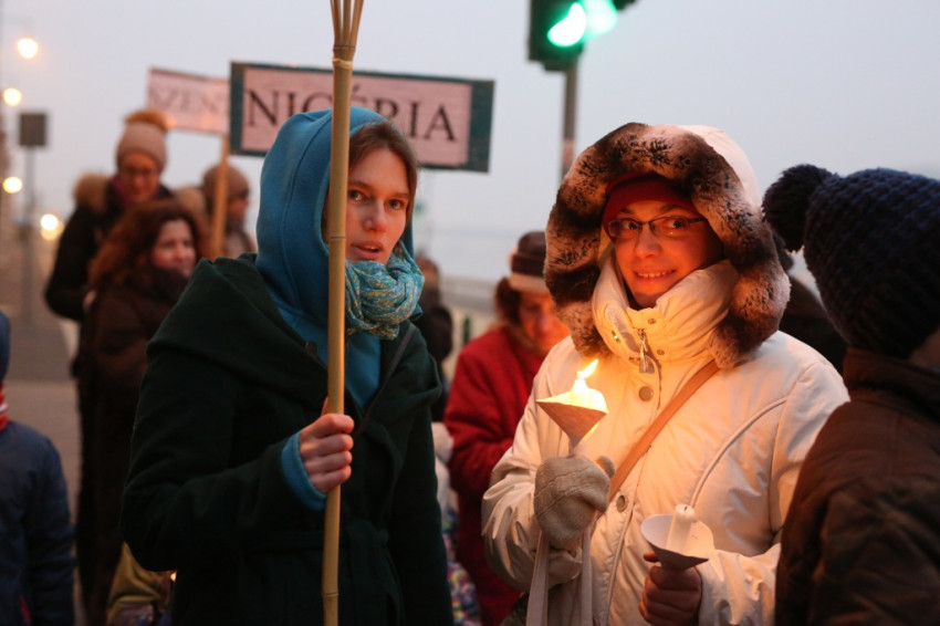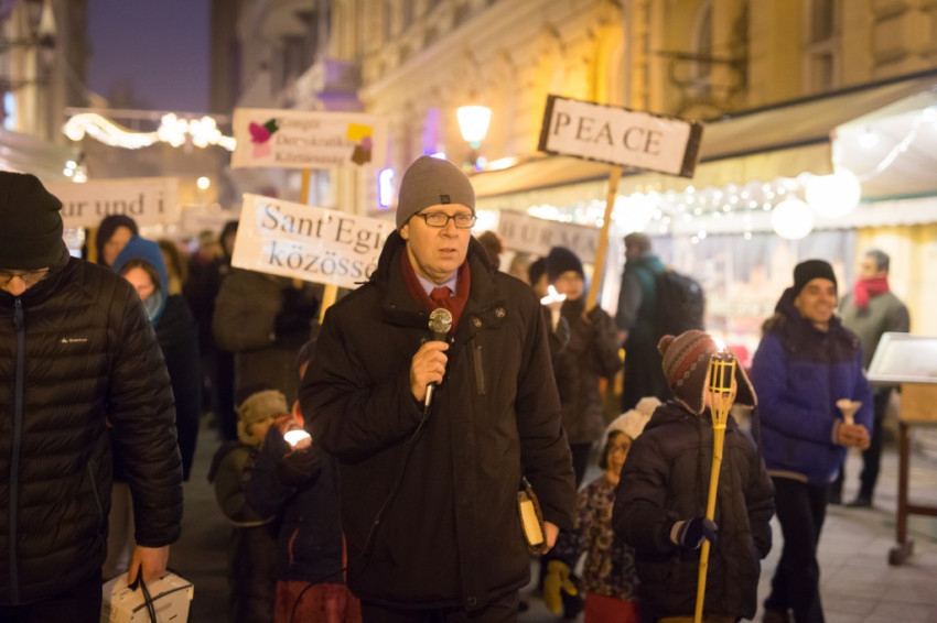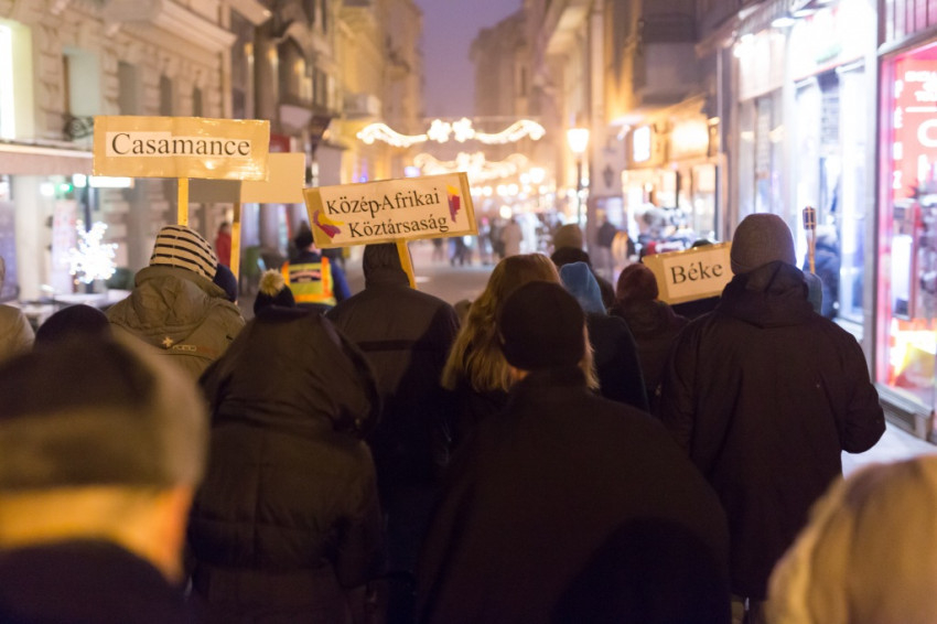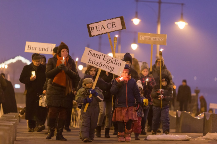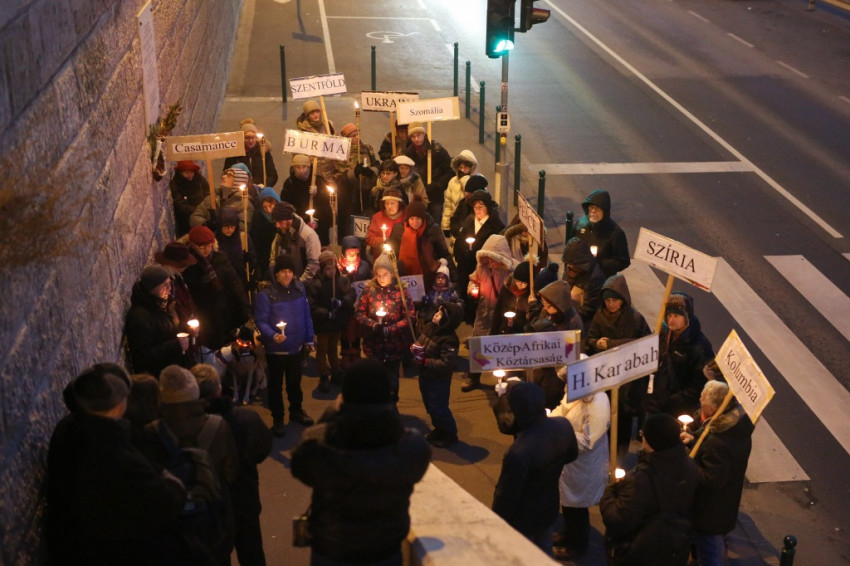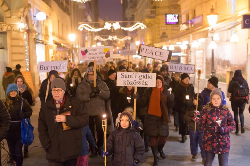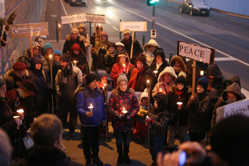 A rakparton egybegyűltek mécsesekkel a kezükben, a háború és konfliktusok sújtotta országok tábláit a magasba emelve vonultak végig a Váci utcán, majd a belvárosi Szent Mihály-templomban ökumenikus imádságon vettek részt.