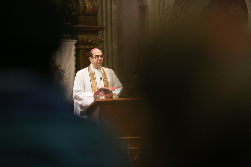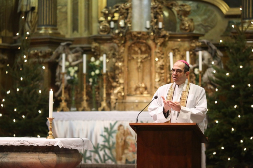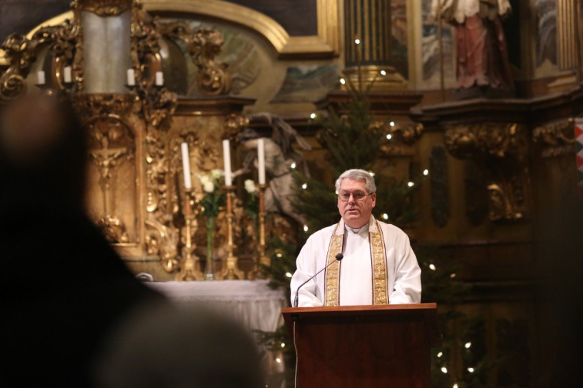 Előbb Osztie Zoltán, a belvárosi Nagyboldogasszony-főplébánia-templom plébánosa köszöntötte e jelenlévőket, majd Székely János püspök a felolvasott evangéliumi részt elemezve beszélt a békéről, az erőszakmentességről, a bosszúállás hiábavalóságáról, értelmetlenségéről. Az evangéliumi rész (Mt 5,38–47) az ellenség szeretetéről szólt. Székely János ennek kapcsán kiemelte, csak a béke, a szeretet visz közelebb minket az erőszakmentes világhoz, csak a szeretet tudja a gyűlölet sebeit begyógyítani. Hozzátette: a háború elemberteleníti annak cselekvő részeseit és elszenvedőit egyaránt. A könnyek tisztítják meg a világot, nem az erőszak. Aki szeret, az könnyezik, Isten pedig maga a szeretet. Meg kell tehát látnunk, értenünk, hogy Isten szeretetből teremtette számunkra a világot, melyet mi teszünk tönkre.