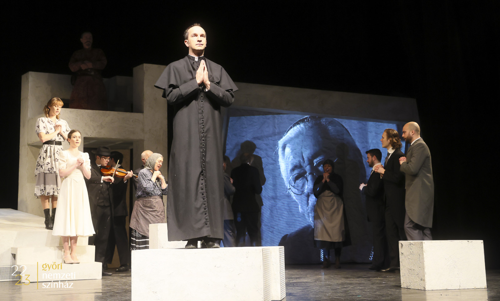 Fantasztikus rendezést láthatott a közönség, nagyszerű szereplőgárdával. Minden színész kitűnően formálta meg, keltette életre a rá osztott karaktert. A főszereplő, Bakos-Kiss Gábor, aki 2021 óta a színház igazgatója, ezzel a darabbal mutatkozott be színészként a győri közönség előtt. Nagyszerű választás volt. Nemcsak alkatra, de lelkileg is közel áll hozzá Apor Vilmos, hisz kamaszkoráig papnak készült.