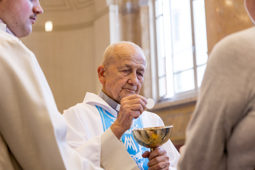 Szentek vagyunk, az Isten kezéből, mondta Urbanek Rudolf, hisz a mi törékeny emberségünkre merte bízni, amit Krisztus tett az utolsó vacsorán: „ezt cselekedjétek az én emlékezetemre”. Ezért