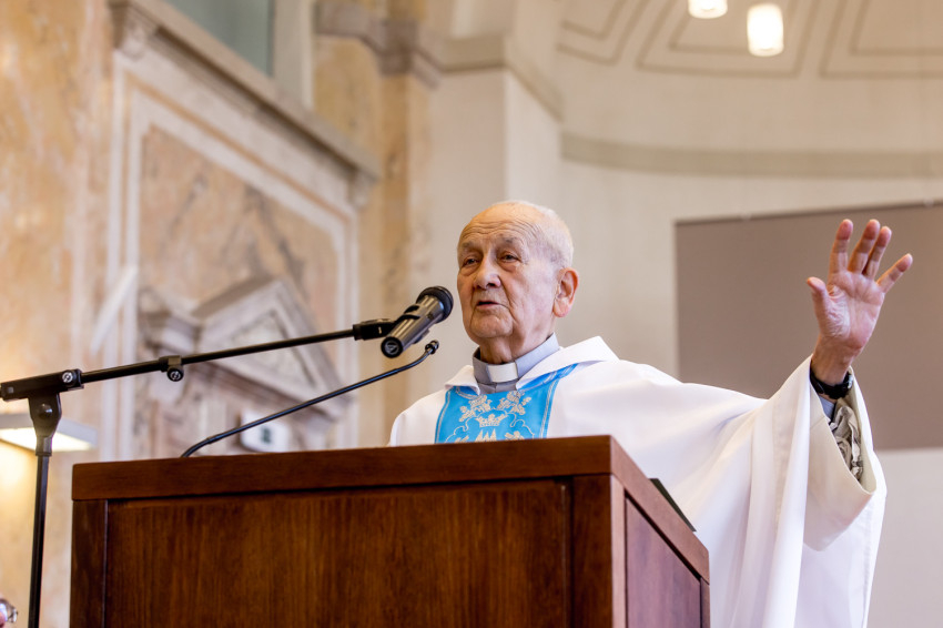 „Most már tudom, hogy mi egy nagy isteni tervnek a részei vagyunk, hiszen éppen most fogjuk ünnepelni Urunk mennybemenetelét. Mielőtt itt hagyta volna föltámadott testében a földet, parancsot adott, menjetek el az egész világra, és hirdessétek az evangéliumot minden népnek. S az apostolok elindultak, és az ő utódaik nemzedékről nemzedékre teljesítették a parancsot. Mindig a helyzethez igazodva, mert mindenkinek mindene akartak lenni. (…) Így volt Kalazanci Szent József is, s az Úr Jézusnak azon szavait, hogy engedjétek hozzám a gyermekeket, mert ilyeneké a mennyek országa, nagyon komolyan vette” – fogalmazott szentbeszédében az érsek.