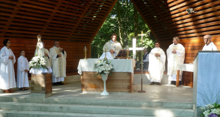 Elmondta, örömmel érkezett paptársaival szentmisét tartani Isten e gyönyörű templomába, ahol „velünk együtt imádkoznak a madarak”, süt a nap, és élvezhetjük Isten szeretetét.
