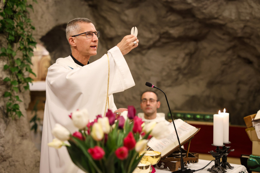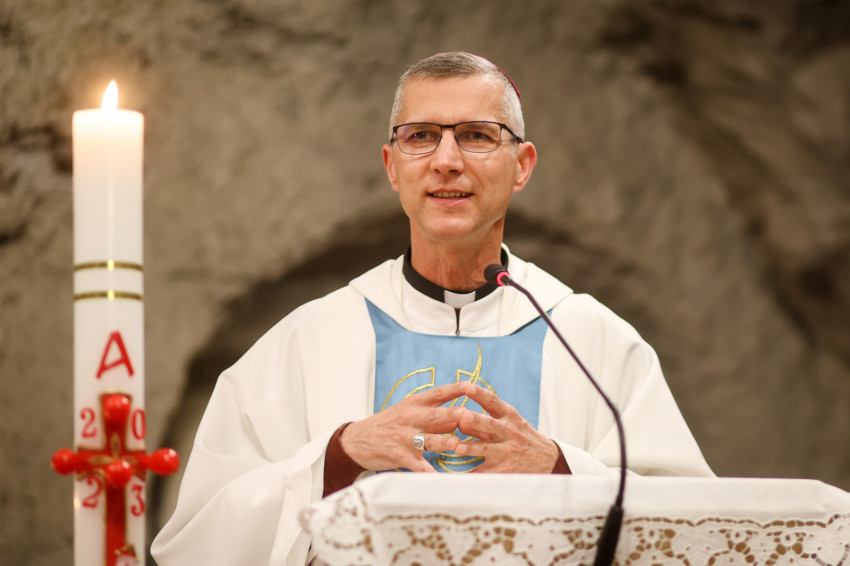 A püspök felidézett egy latin mondást, amely magyarra így fordítható: „A vízcsepp kivájja a követ, nem mert erős, hanem mert újra és újra leesik.” Isten ugyanígy újra és újra kopogtat a szívünkön, csepegteti a gyógyszert a szívünkbe – biztatott.
