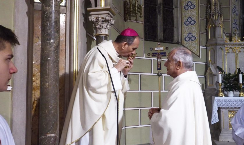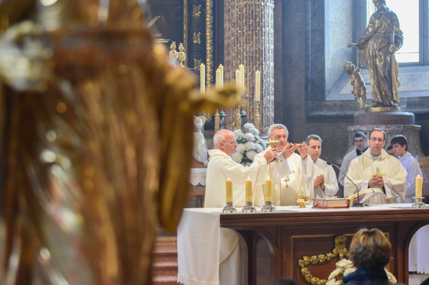 Udvardy György érsek mutatott be szentmisét a veszprémi Szent Mihály-bazilikában mindenszentek ünnepének estéjén Nagy Károly apát-kanonok-plébánossal.