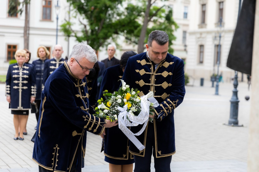 Az egri Líceum aulájában található emléktábla koszorúzásával vette kezdetét a jubileumi megemlékezés.