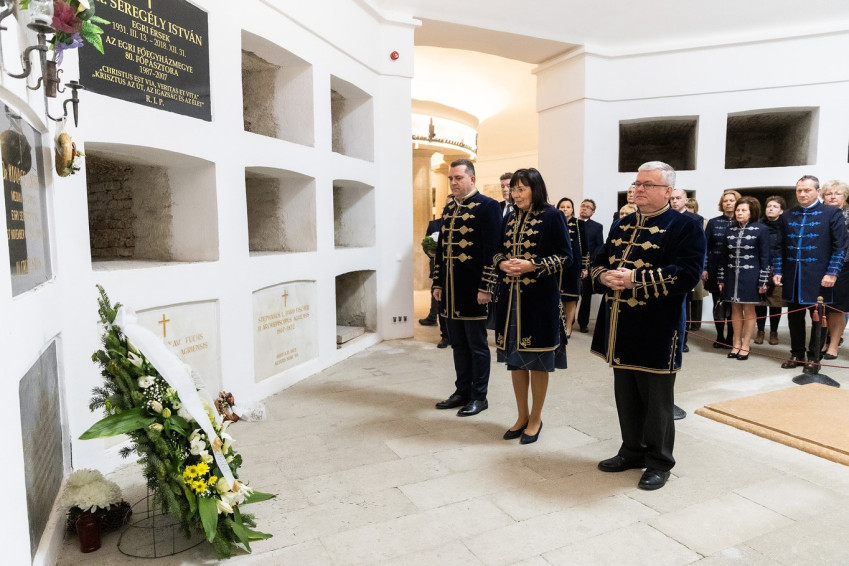 Ezt követően a résztvevők az Eszterházy téren, a néhai püspöknek a Líceum épülete előtt álló szobránál, majd az egri székesegyház bazilika altemplomában, a püspök nyughelyénél is tisztelegtek Eszterházy Károly emléke előtt.