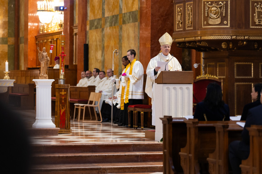 A főpásztor köszöntötte Marton Zsolt váci megyéspüspököt, a paptestvéreket, a világi elöljárókat, az egyetem dolgozóit és polgárait.
