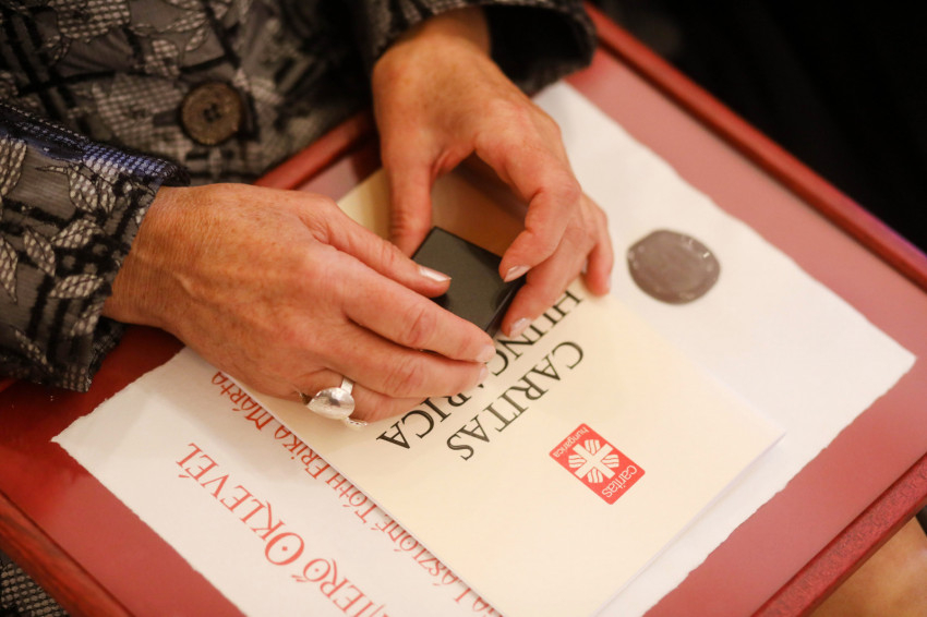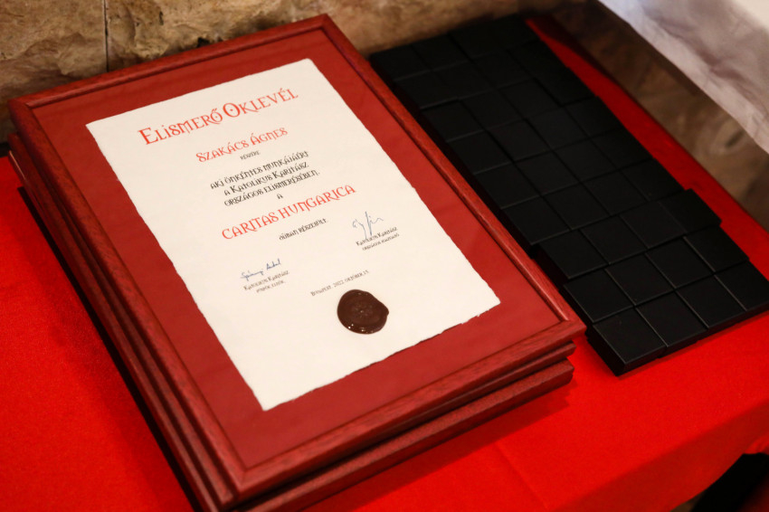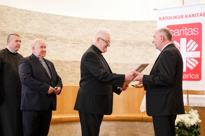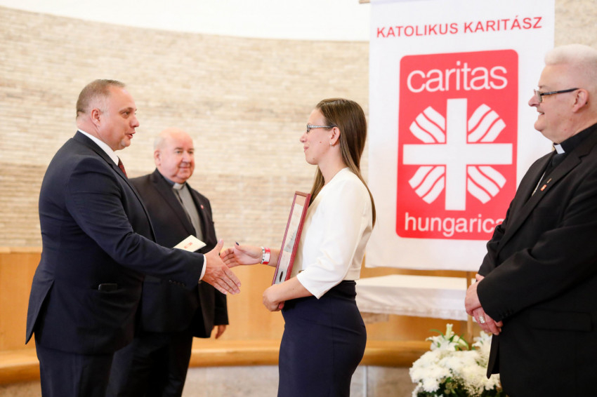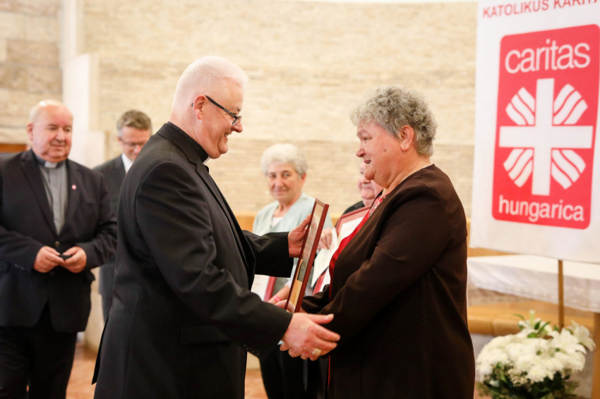 Szavaiból kiderült: a Katolikus Karitász vezetősége 2012-ben alapította meg a Caritas Hungarica díjat, amelynek célja elismerni és értékelni a Karitász önkénteseinek különböző szociális területeken végzett példaértékű munkáját. Ennek jeléül külön kitüntetéssel jutalmazzák azokat az önkénteseket, akik Krisztus szeretetéről példaértékűen tesznek tanúságot. A díj további célja az önkéntesség társadalmi megítélésének növelése, a karitatív tevékenységre való buzdítás, Árpád-házi Szent Erzsébet nyomán, valamint példaképül állítani mások elé azokat a köztünk lévő híveket, akik Krisztus szeretetével önzetlenül segítenek a rászorulókon, Jézus tanításának szellemében: „Mert éhes voltam, és ennem adtatok, szomjas voltam, és innom adtatok. Vándor voltam, és befogadtatok. Mezítelen voltam, és felruháztatok. Beteg voltam, és meglátogattatok. Börtönben voltam, és felkerestetek.” (Mt 25,35–36)