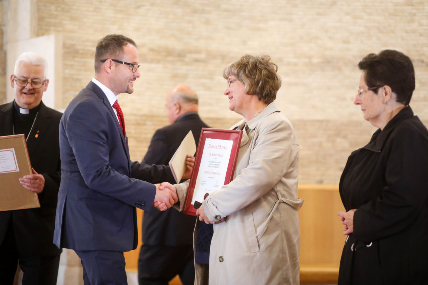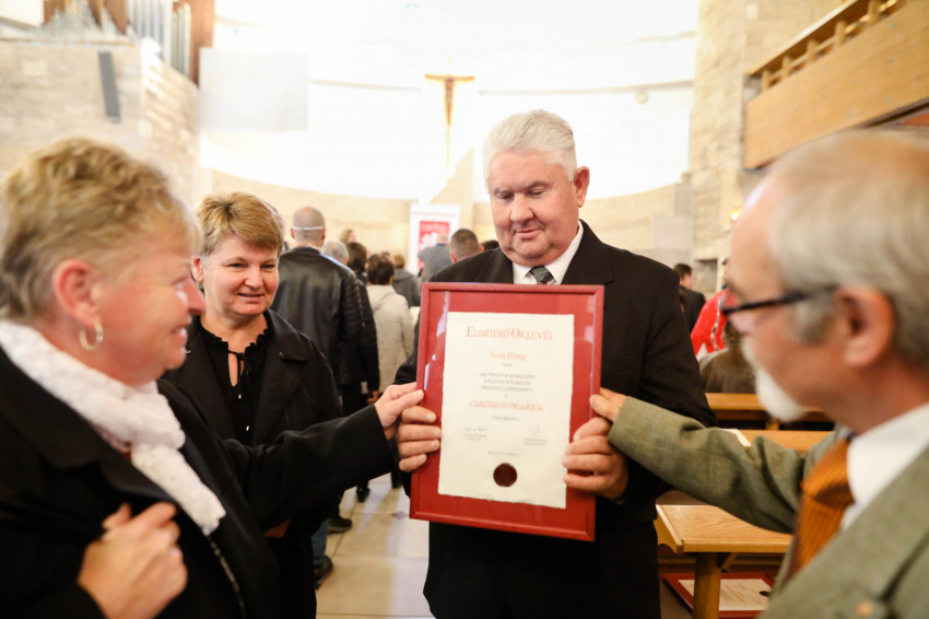 A kitüntetések átadása után a díjazottak nevében Lehelné Szentjóby Ildikó szólt a jelenlévőkhöz. A zsoltárost idézte: „Szolgáljatok az Úrnak örömmel!” (102). Elmondta, vallásos családban nőtt fel, ahol megtapasztalhatta, hogy jót tenni jó. Másokon segíteni neki is örömet jelent. Megerősödött benne az érzés, hogy Krisztust elsősorban a másik emberben tudjuk szolgálni. „Nem elég Krisztust szeretni. Meg kell találnunk a helyünket, hogy Isten munkatársai lehessünk. Sugározni az Ő szeretetét, és ezzel átformálni a szíveket és a világot.”