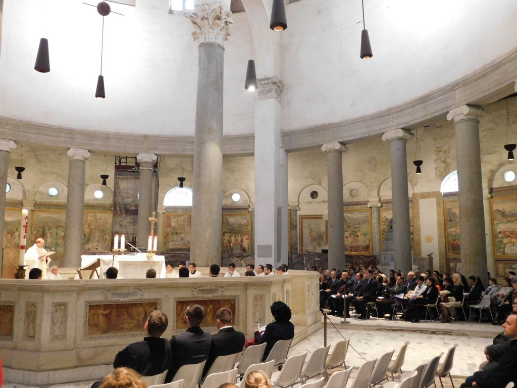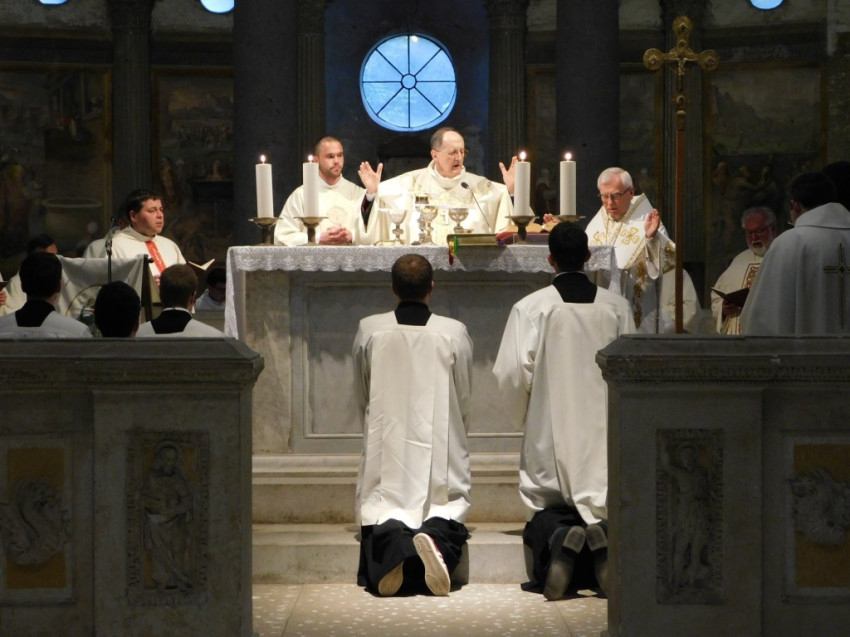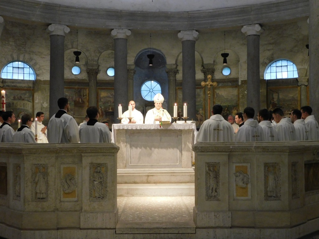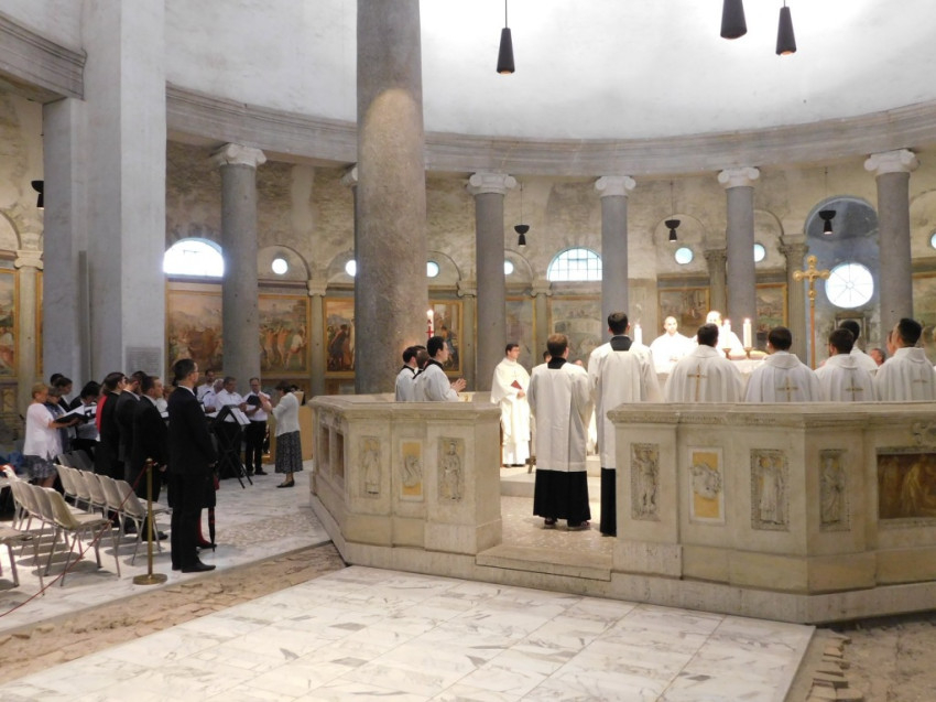 A szentmise főcelebránsa Beniamino Stella bíboros, a Klérus Kongregációja prefektusa volt. Koncelebrált Irynej Bilyk ukrán görögkatolikus püspök, a Santa Maria Maggiore-bazilika kanonokja, Tóth Tamás pápai káplán, a római Pápai Magyar Intézet rektora, Németh László prelátus, olaszországi magyar főlelkész, Stefan Dartmann, a római Pápai Német–Magyar Kollégium rektora, Franz Xaver Brandmayr, a római Santa Maria dell’Anima Pápai Kollégium rektora, Melo Lajos, a Santa Maria Maggiore-bazilika gyóntatója. Koncelebráltak továbbá a Pápai Magyar Intézet és a Német–Magyar Kollégium papjai. A szentmisén a kalocsai székesegyház kórusa énekelt.