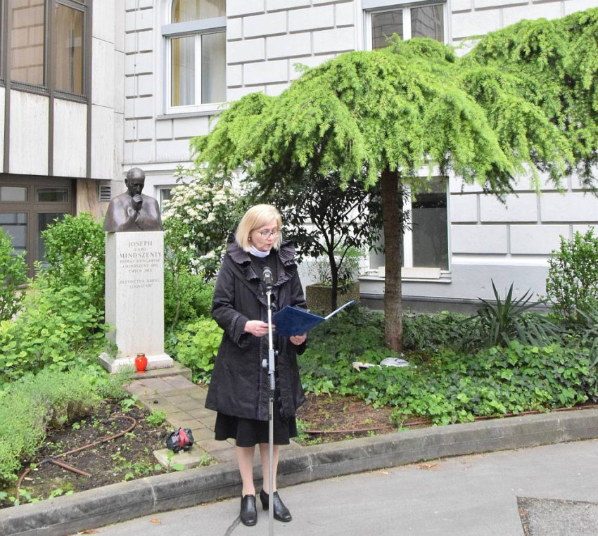 A szentmise után megkoszorúzták Mindszenty József szobrát, amely Rieger Tibor alkotása, és jelenleg az Irgalmas Kórház udvarán található, majd Szilágyiné Bátorfi Edit, Magyarország ausztriai nagykövete mondott beszédet.