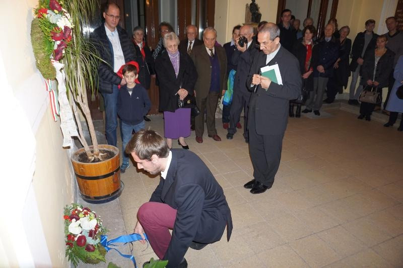 A szentmisét követően megkoszorúzták a Collegium Pazmanianum földszintjén elhelyezett Mindszenty-emléktáblát.
