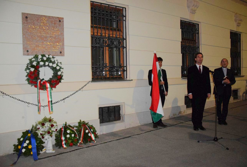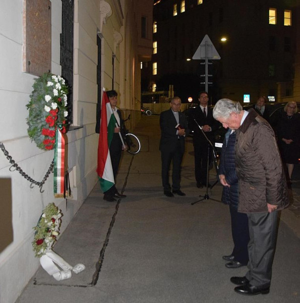 A szentmise után Szilágyiné Bátorfi Edit nagykövet asszony, Habsburg Lotharingiai Mihály főherceg, az Ausztriai Magyar Egyesületek és Szervezetek Központi Szövetsége nevében Sass Judit; a társszervező, a bécsi Kaláka Club elnöke, Wurst Erzsébet, valamint a Pázmáneum nevében két egyetemista, Kertész Ágota és Balogh Áron megkoszorúzták Mindszenty József emléktábláját az épület homlokzatán.